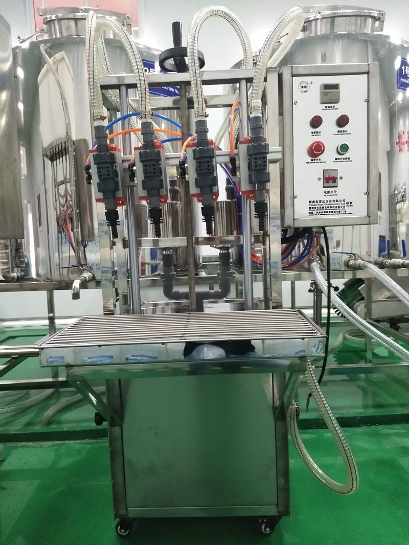 定量灌裝機:通過攪拌罐出來的(de)成品,靜置放置後(hòu),無泡後,需(xū)要灌(guàn)裝,手工灌裝不夠精準,效率低,需要(yào)一(yī)台灌裝(zhuāng)機來完成。活塞式的定量灌裝機,可對不同高粘(zhān)度流體進行灌裝,灌裝精(jīng)準,操作簡單,便於維護且灌裝無滴漏。灌(guàn)裝頭可自由選配,有2頭、4頭、6頭多種選擇。操作簡單,易上手。