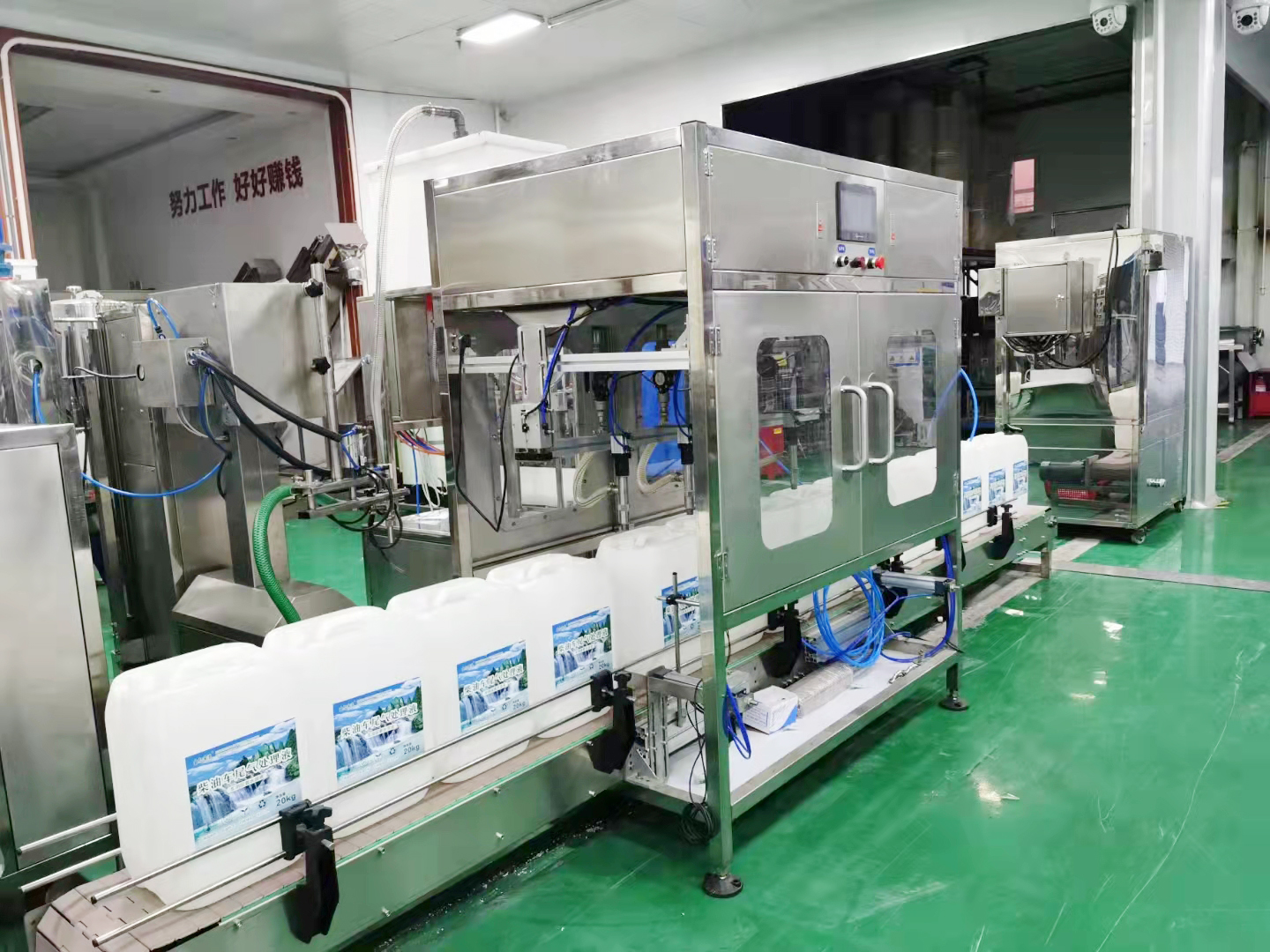 8、成品車用尿素(sù)溶液經過每(měi)小時產量1500-2000公斤的高效氣動重力灌裝機罐裝,在經過擰(nǐng)蓋機或人工擰(nǐng)蓋、鋁箔機封口,貼標即為標準車用(yòng)尿素容易成品。