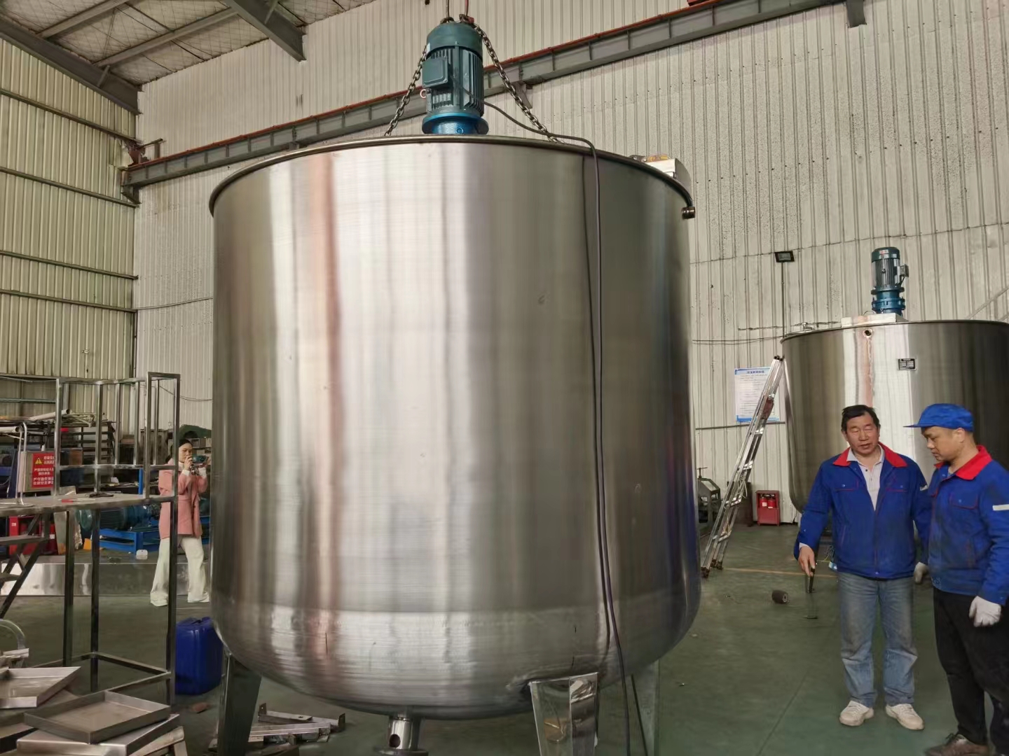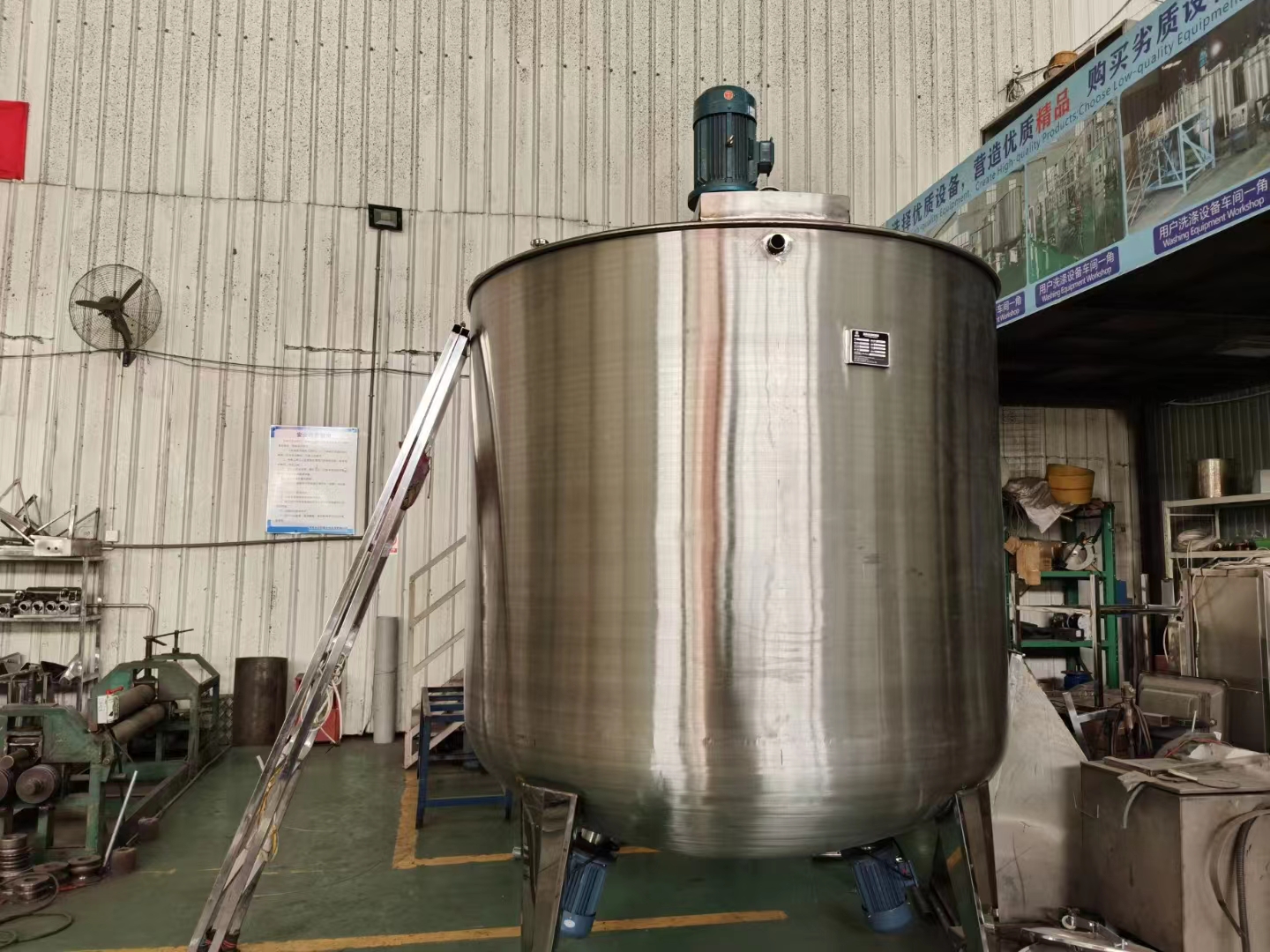 六噸容積反(fǎn)應釜配置,設備容積6000升(shēng),材質(zhì)304不(bú)鏽鋼,壁厚5毫(háo)米,上部攪拌(bàn)機+變頻調速器0-150轉/分,底部2台高速剪切分散機,側麵DN50隔膜全氟乳化機(jī)用於循環乳化和快速排料以及原料加料。設備內部采用加厚阻流和(hé)多孔緩壓,生產用(yòng)水進入采(cǎi)用底減泡裝置,標(biāo)準自動控(kòng)製(zhì)櫃,底部DN50全開(kāi)式蝶閥(fá),側麵小樣在線檢測口。